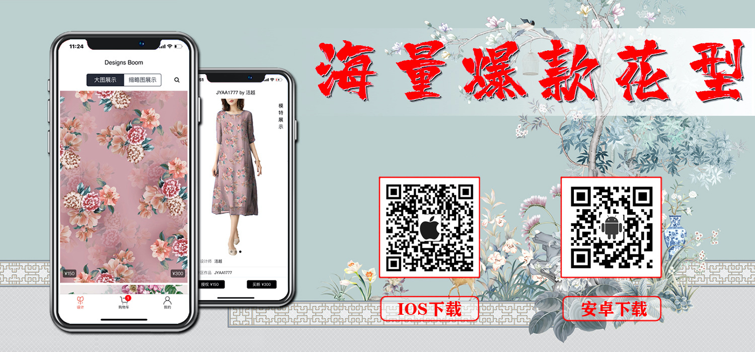 DesignsBoom服装面料花型设计服务互联网平台,致力于服装面料花型开发。主要为纺织面料行业提供印花图案,实现快速反应,打造流行面料图案、爆款花型。并聚集各类花型设计师、工作室,实现自由设计和创业。